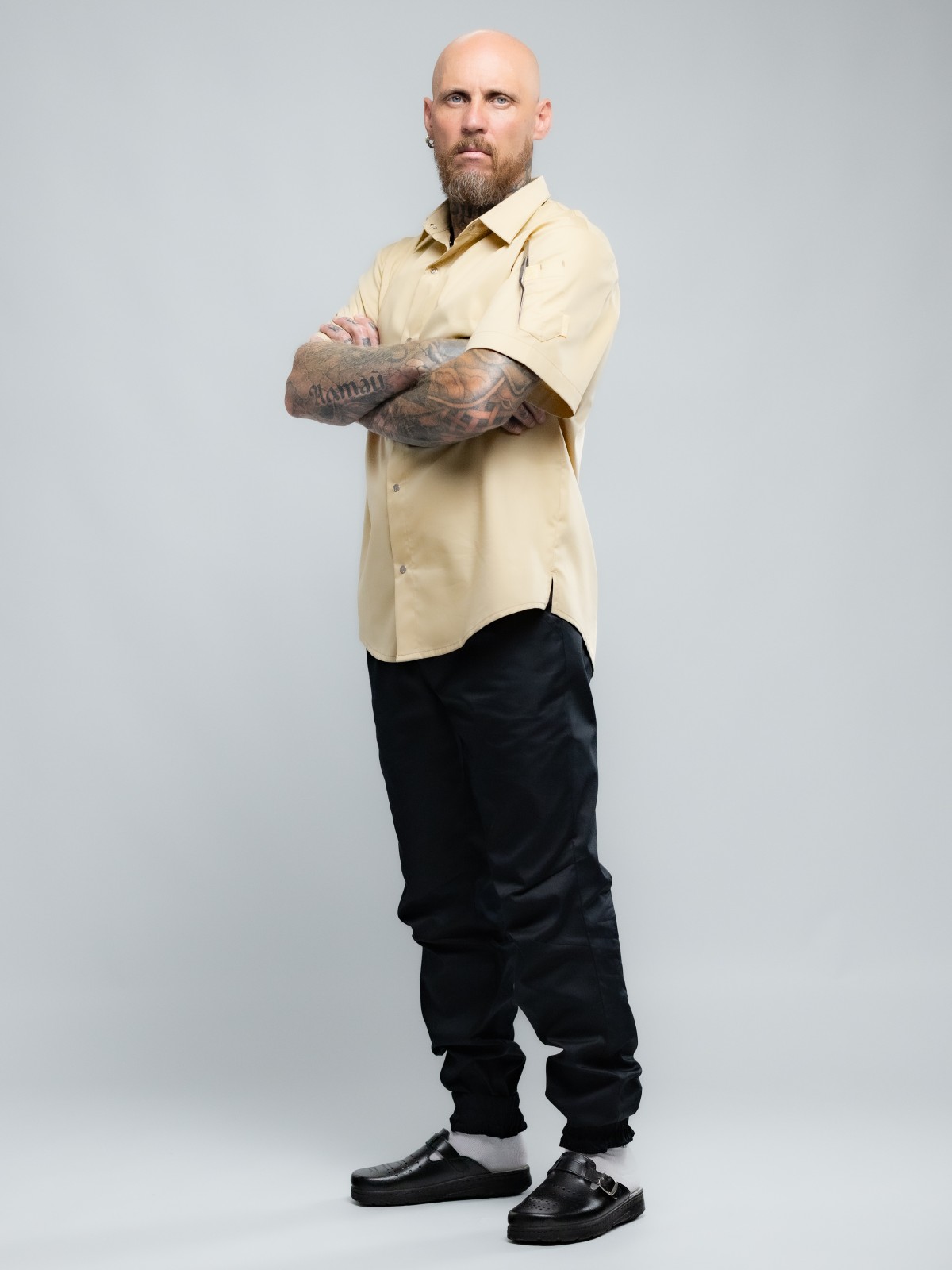 Профессиональный поварской китель-рубашка из лёгкой эластичной ткани.