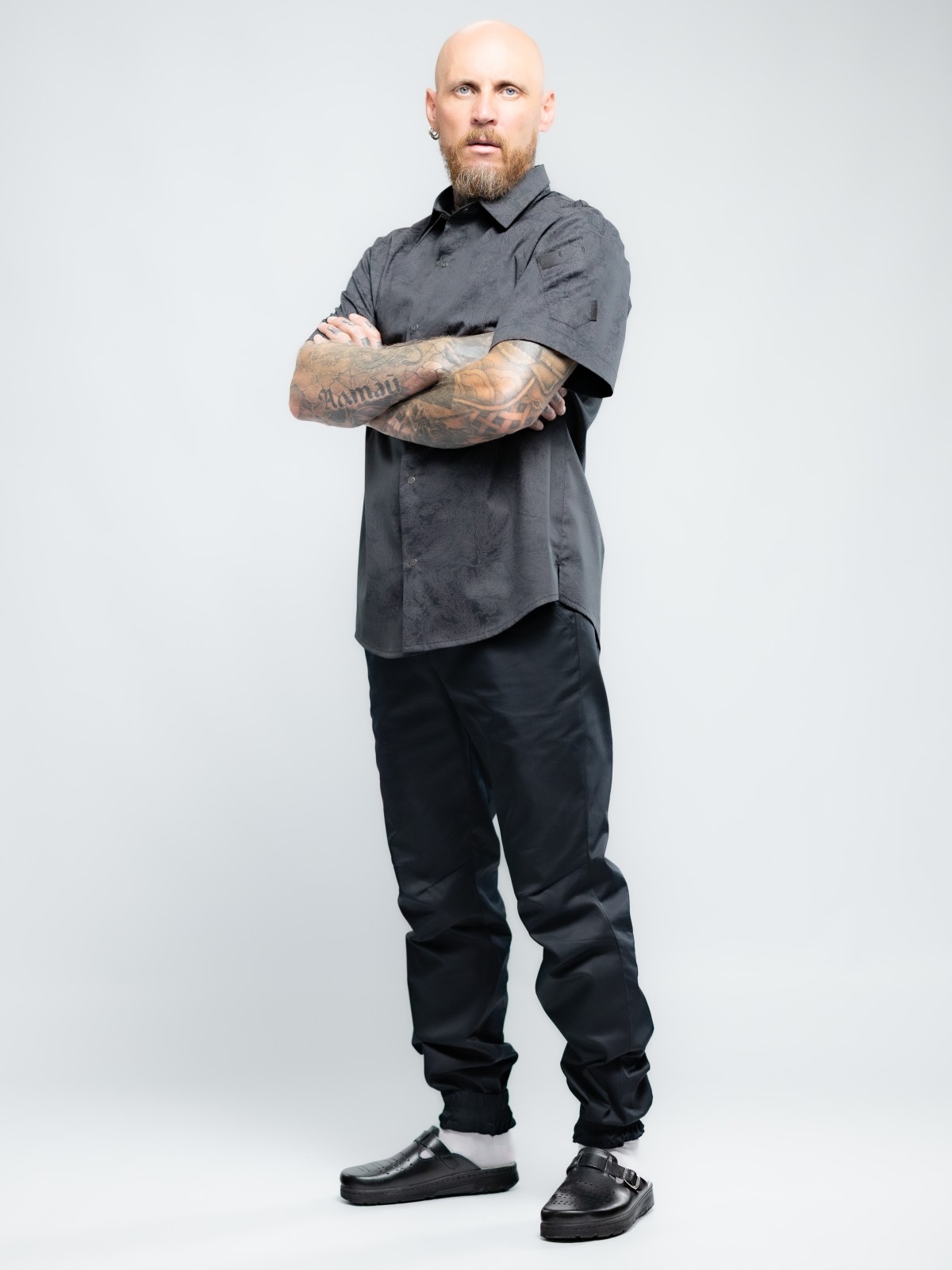 Профессиональный поварской китель-рубашка из лёгкой эластичной ткани.