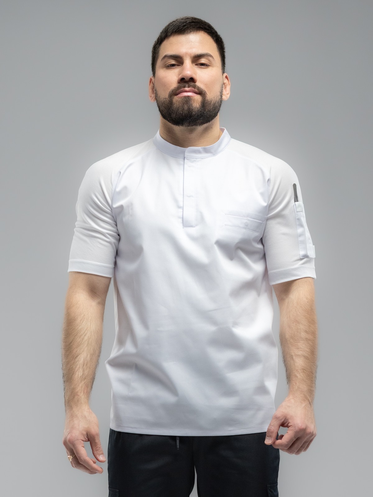 • Спинка и рукава кителя повара выполнены из высококачественного трикотажа, который так же используется в профессиональном спорте.