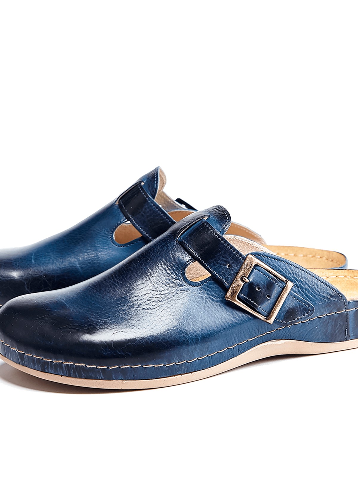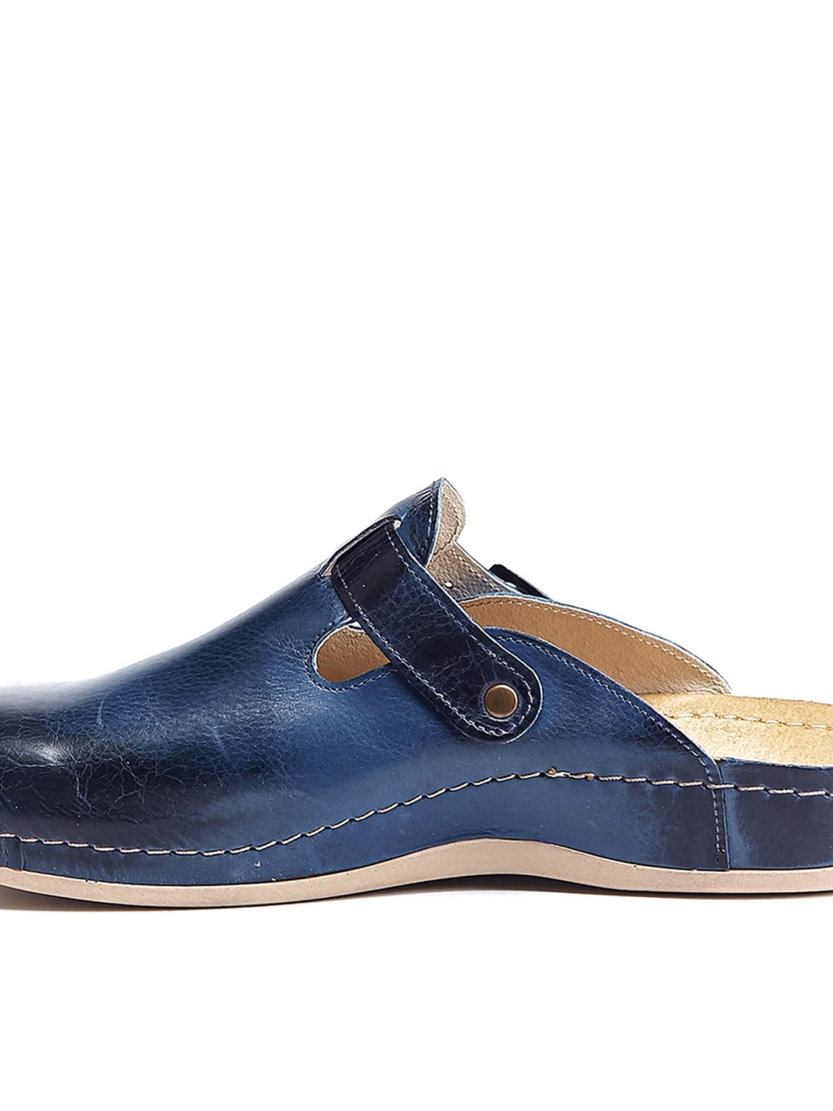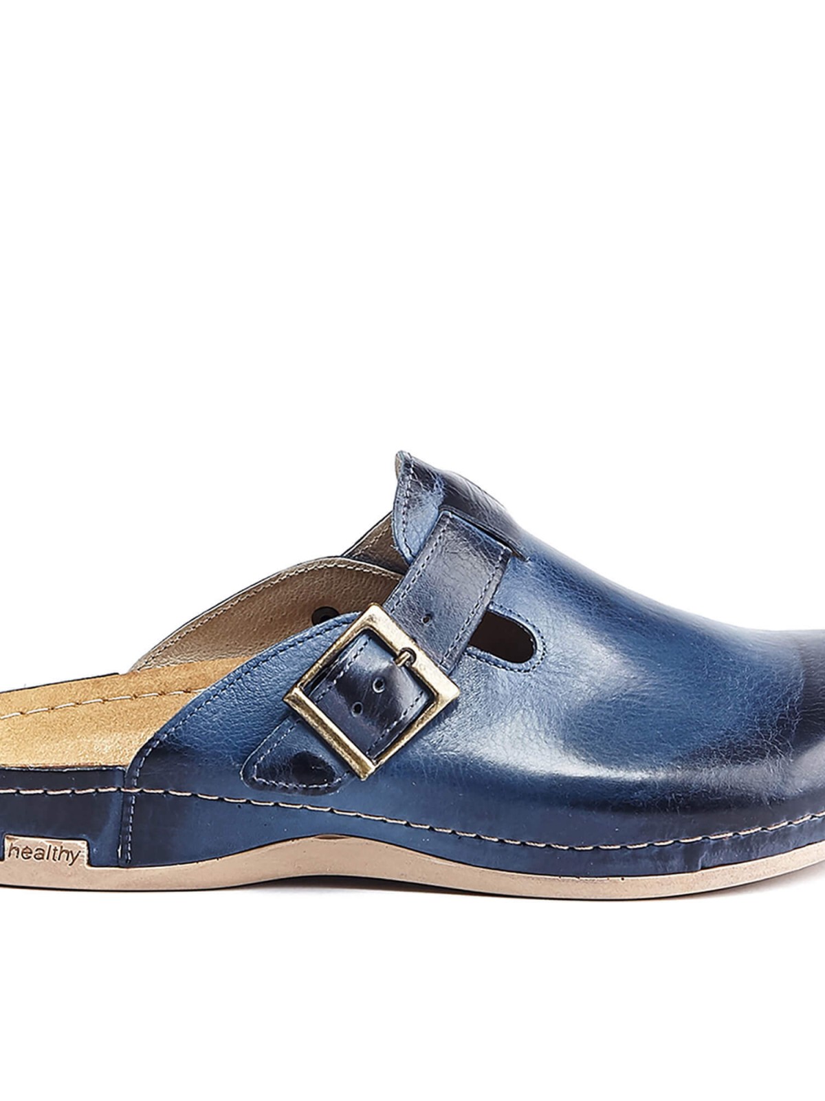 Максимальная закрытость модели делает обувь универсальной. Такое изделие вписывается в любой look. Дышащая поверхность гарантирует отсутствие влаги внутри тапочка, что отлично сказывается на повседневной носке модели даже в жаркий сезон. Изюминка от дизайнеров – ремешок. Он не только аккуратно украшает сабо, но и выступает в роли фиксатора. Он регулирует ширину тапочка в соответствии с размером стопы. Темно-синий окрас основания модели сочетается с коричневым оттенком подошвы, придавая модели элегантности. Прекрасный внешний вид тапочек-сабо дополняется ортопедическими характеристиками модели. Обеспечение длительного пребывания на ногах без эффекта усталости происходит за счет наличия массажной гель-стельки.