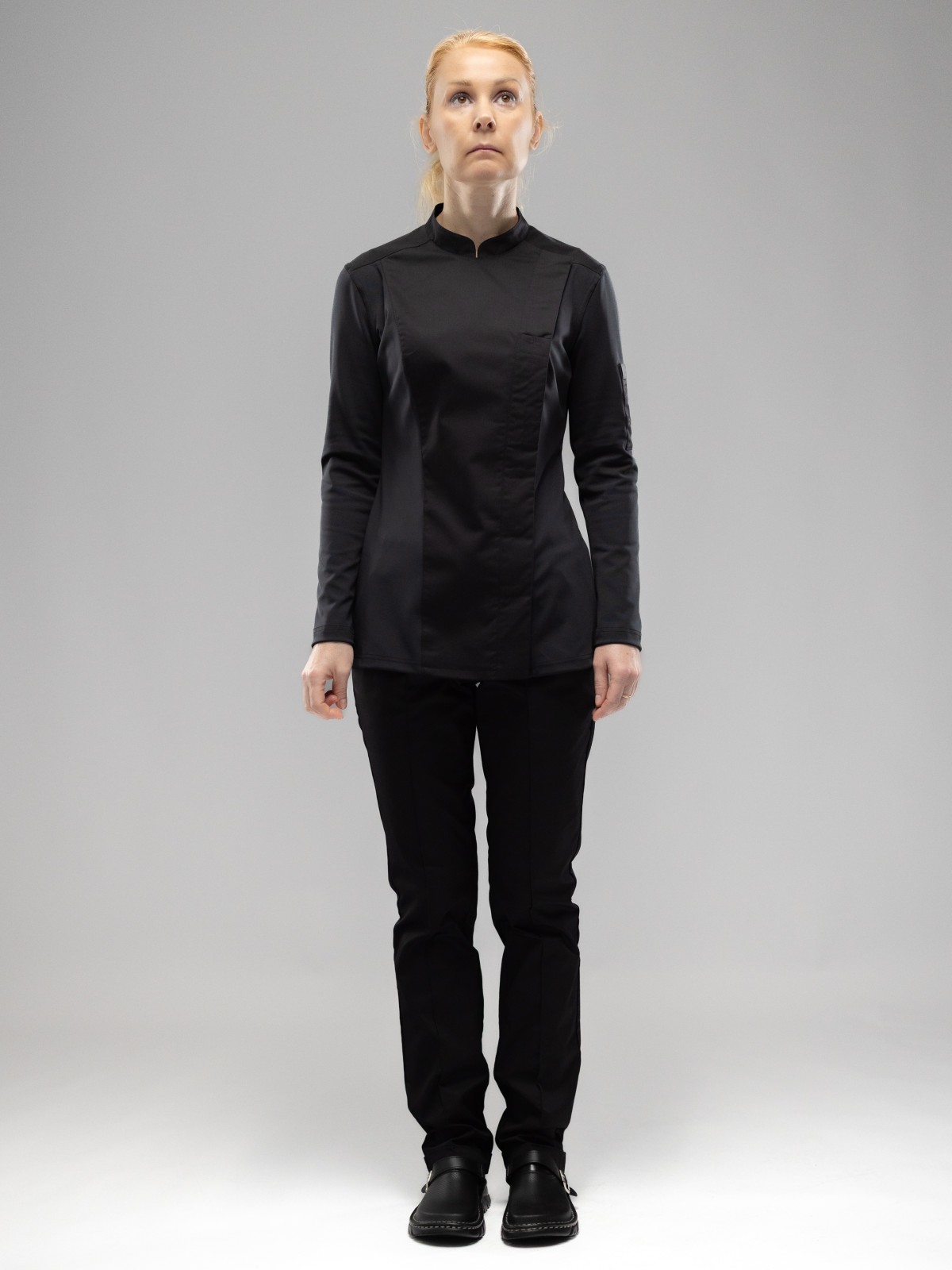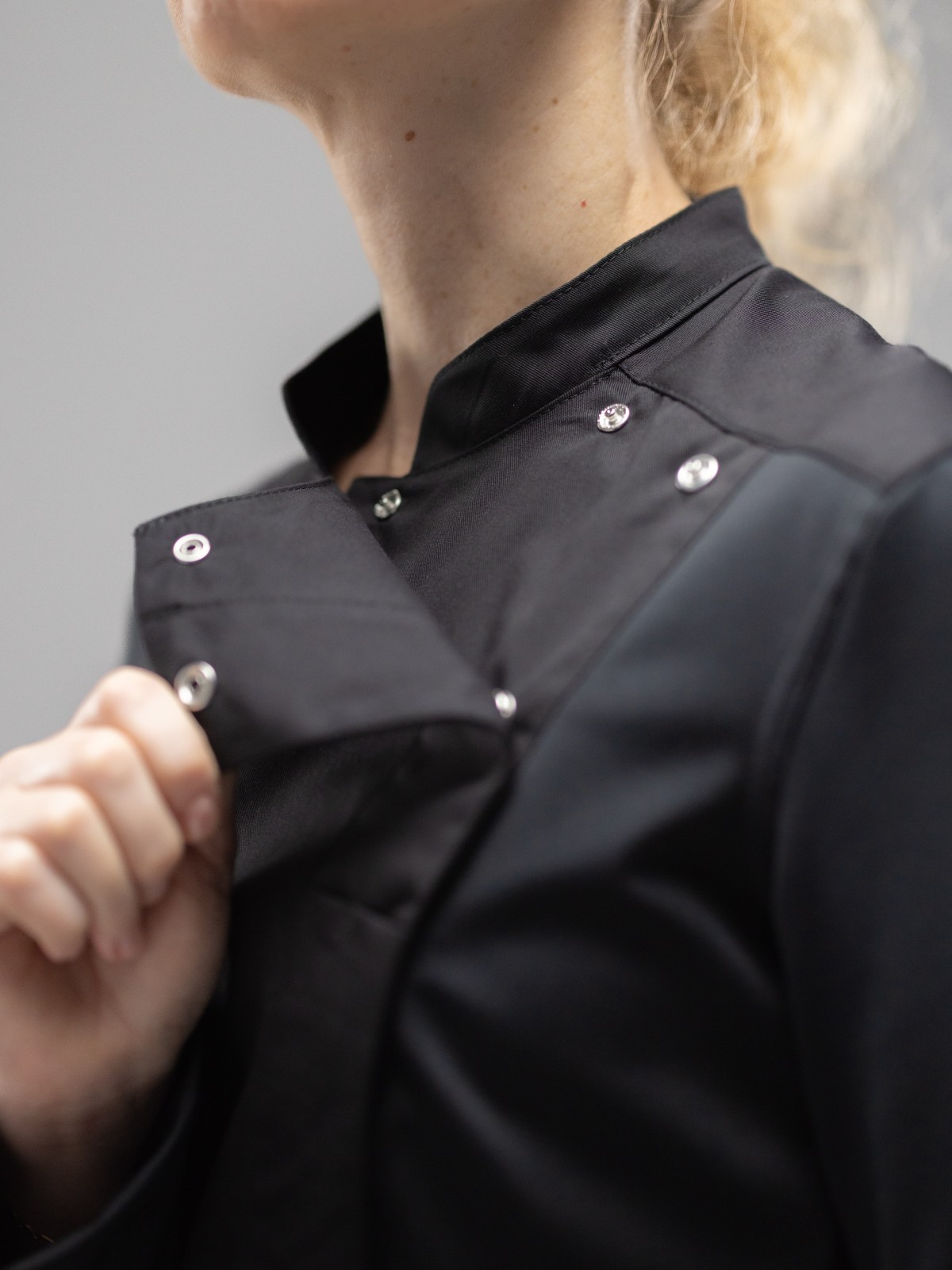 • Удобные потайные застежки-кнопки из нержавеющего металла надежно фиксируют поварской китель.
