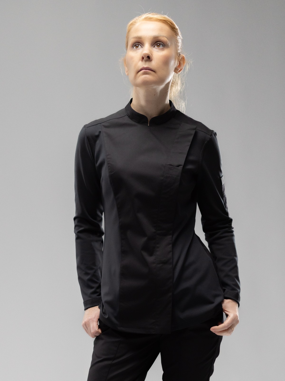 • Формоустойчивая, но пластичная ткань высочайшего качества с эффектом "стрейч" обеспечивает свободу движения в поварской форме нового поколения от PITERPROF.
