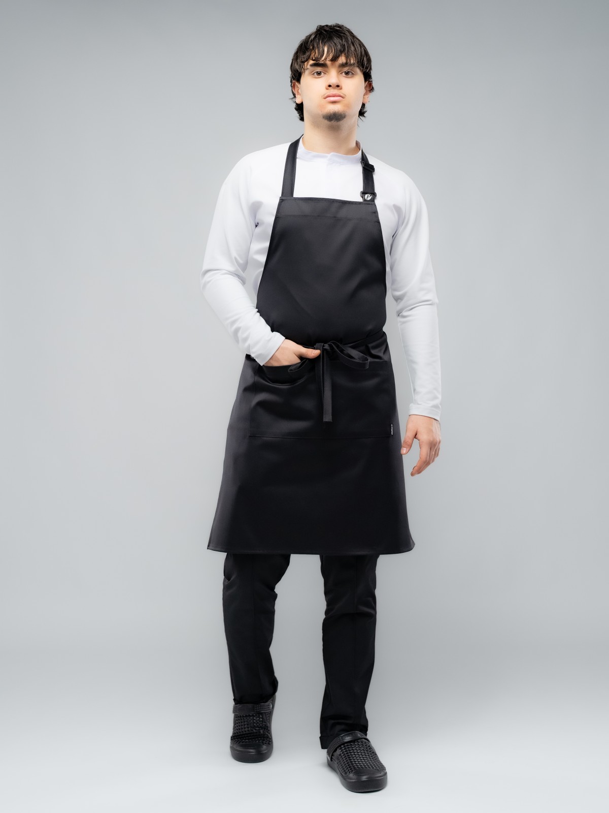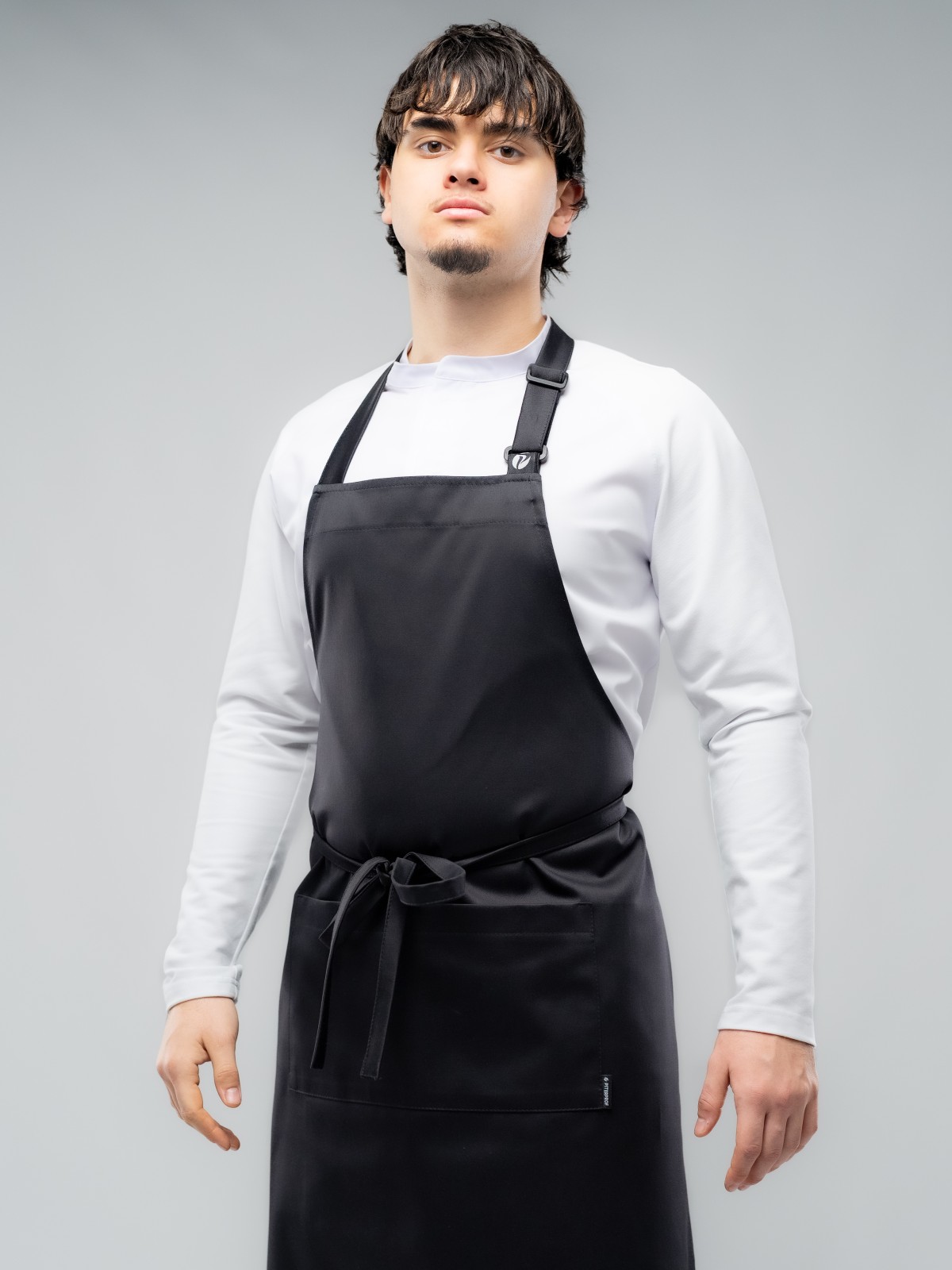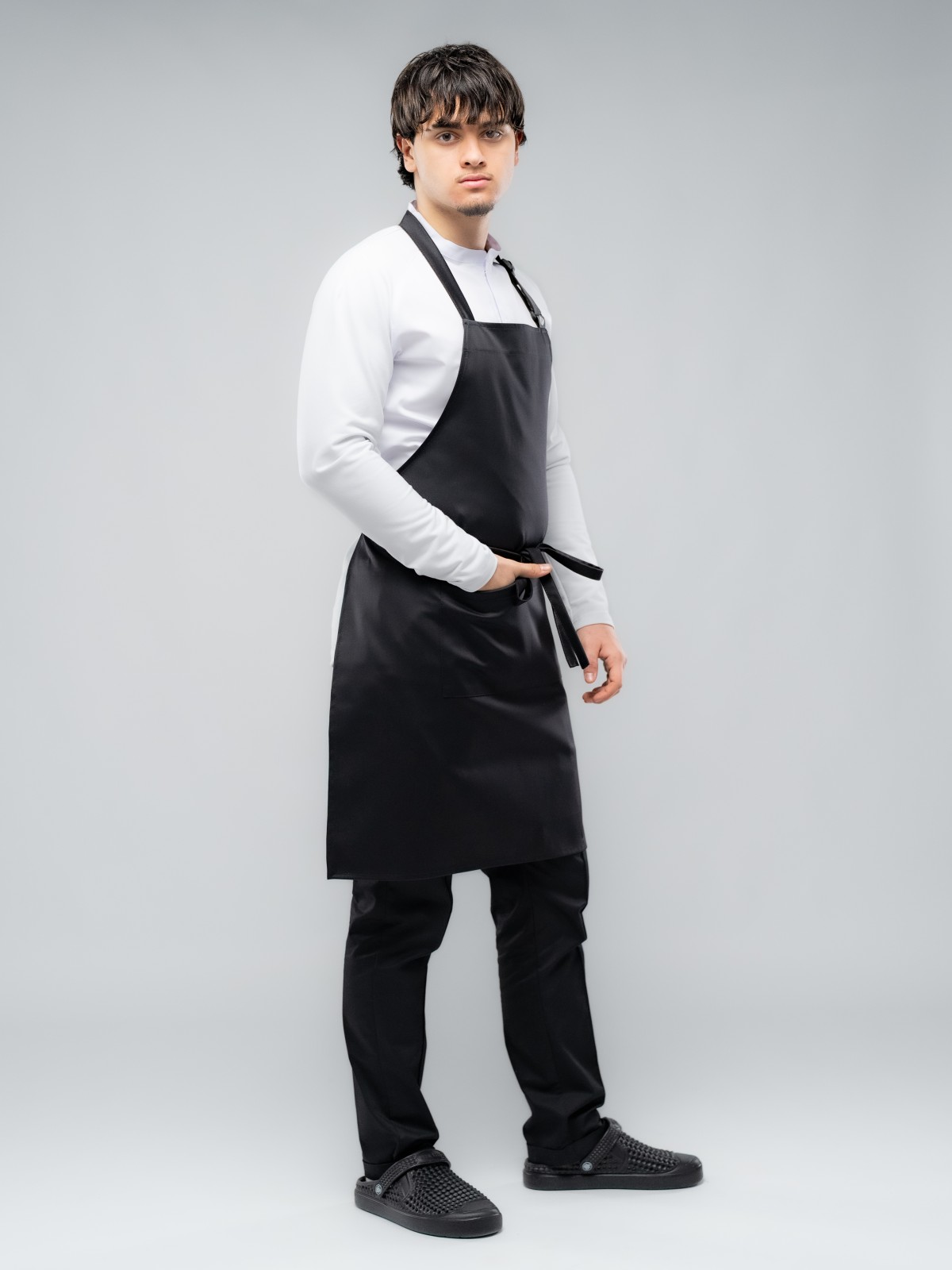 Базовый фартук из плотного прочного и при этом комфортного и долговечного материала с гладкой фактурой.