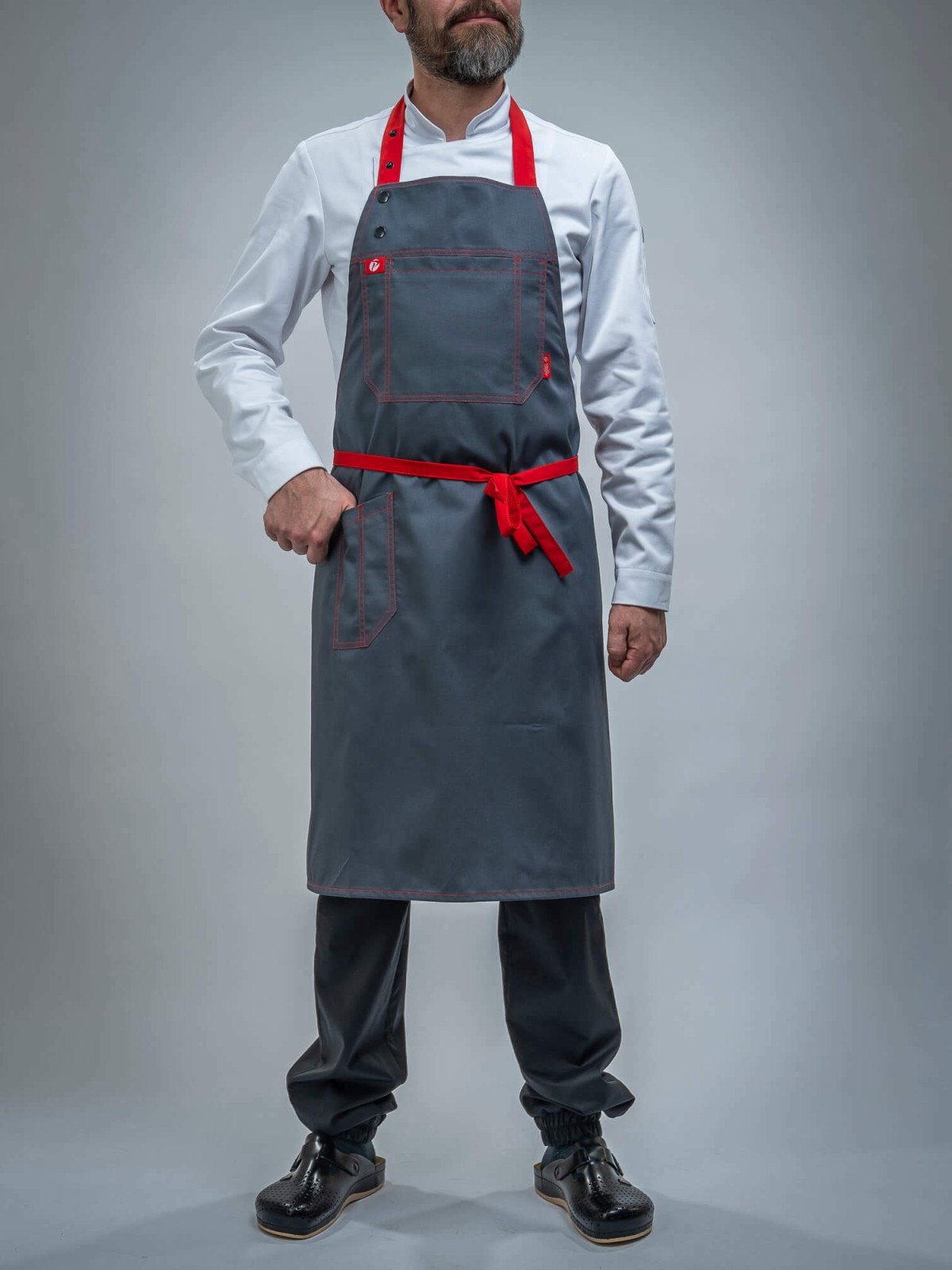 - Использована профессиональная ткань, которая позволяет стирать фартук десятки раз без потери внешнего вида, выцветания и образования катышек.