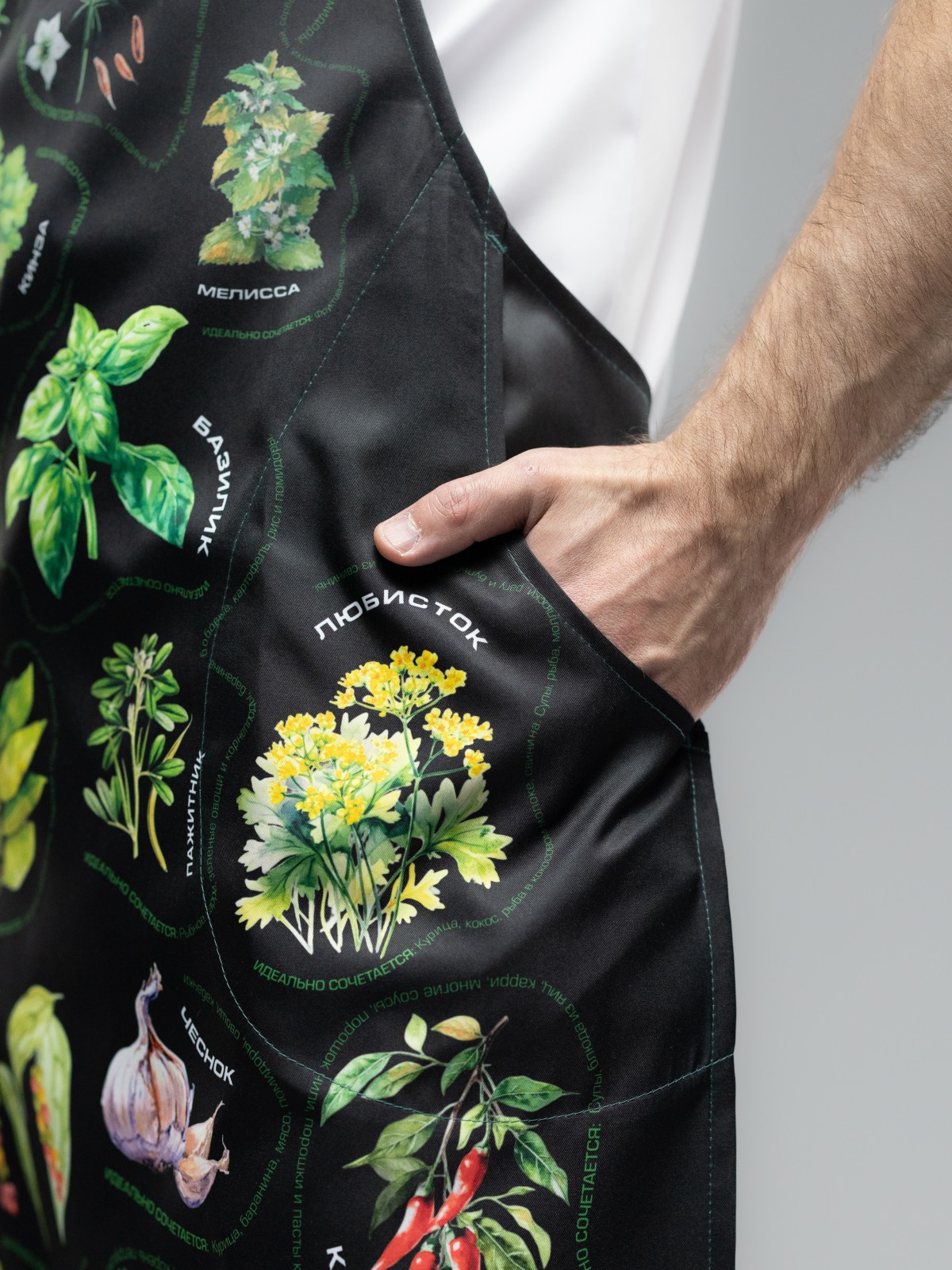 Стильный принтованный фартук FTS PITERPROF из 100% Полиэстера с принтом Гастроботаника