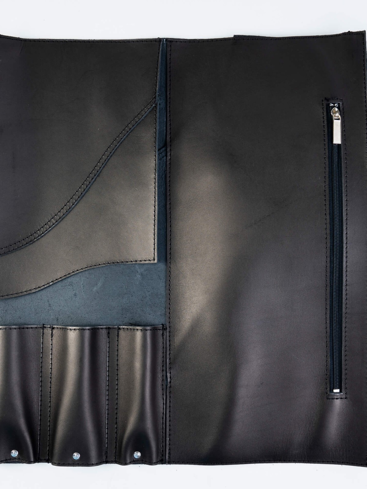 3 кармана для ножей и большой карман на молнии для остального инструмента.