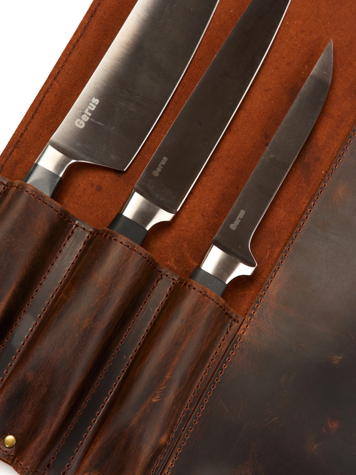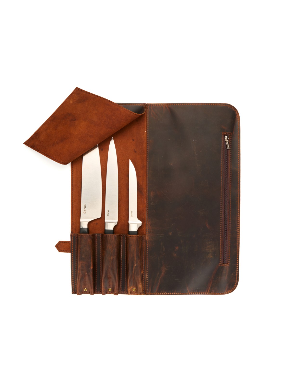 Кожаная сумка скрутка на 3 ножа - это первая скрутка для повара переходящего на новый уровень.