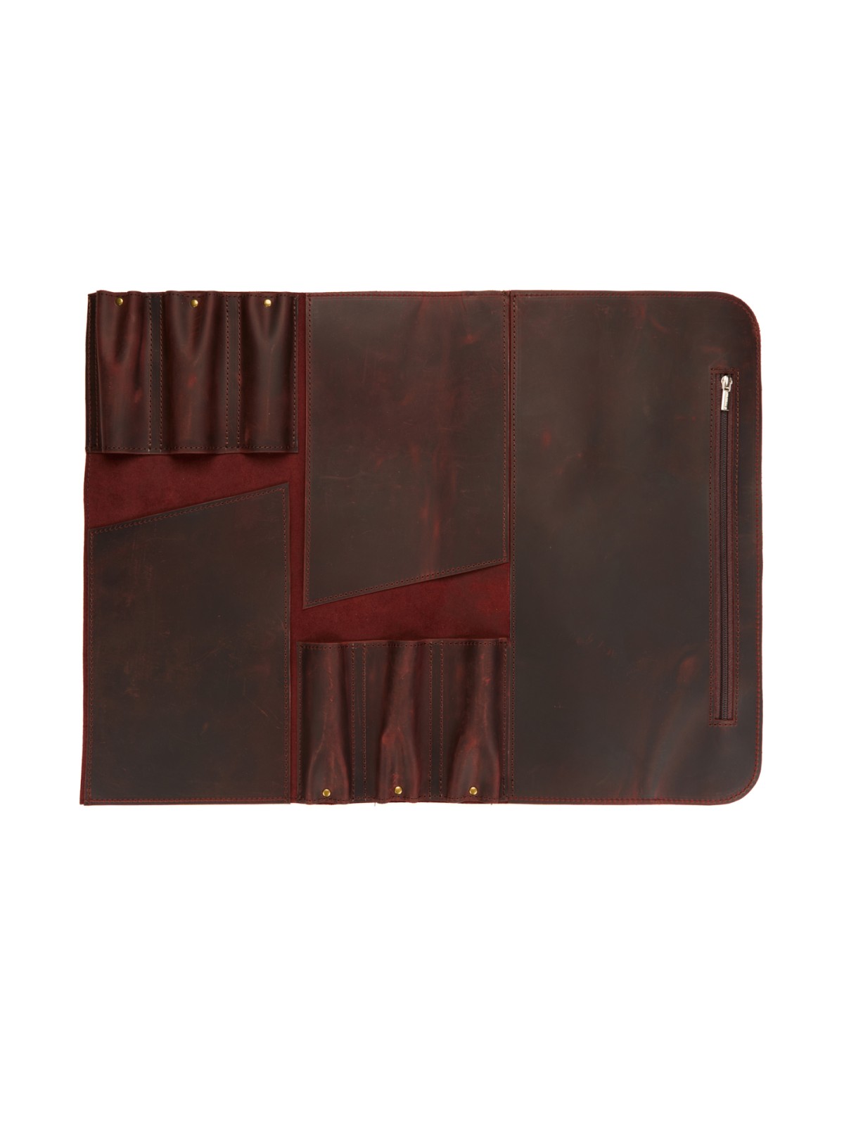 6 карманов для ножей и большой карман на молнии для остального инструмента.