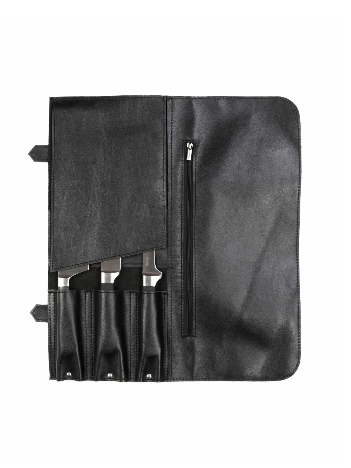 3 кармана для ножей и большой карман на молнии для остального инструмента.